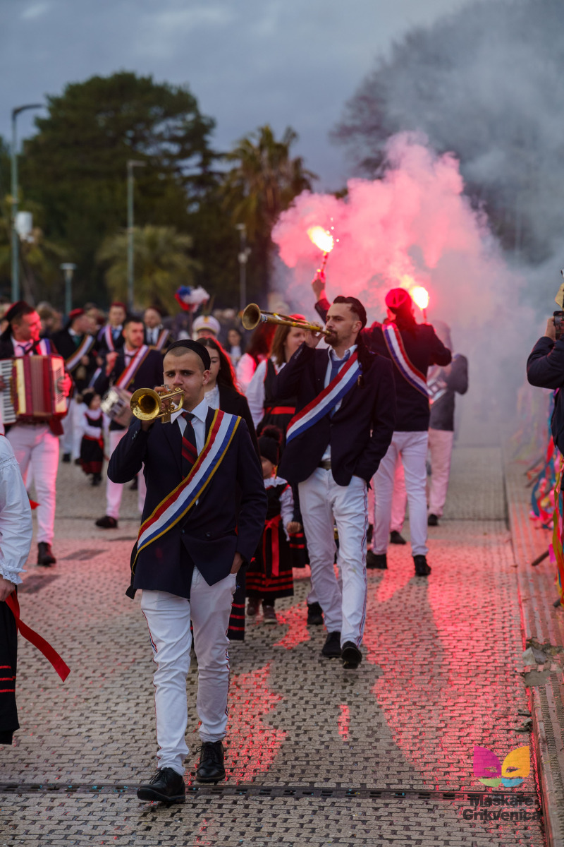 Sudionicima Velike povorke nije smetao ni pljusak, zabava ni u jednom trenutku nije smanjila svoj intenzitet. U goste Crikvenici stigli su meštar Riječkog karnevala Sandi i njegova nova kraljica Nora Marčelja, a nakon Velike povorke sve posjetitelje ove najveselije manifestacije zabavljao je Mauro Staraj i „La Banda“.
